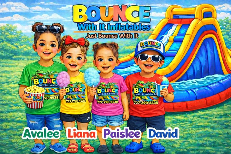 About usBounce With It Inflatables is a family-owned business built with heart. We started this company as a way to create something meaningful for our family, while also giving our kids a foundation for the future.